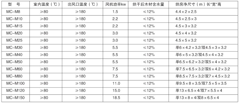 8、热风温度可根据不同木材的需要,可在35°C~100°C可调、可控,实现了对各种硬木、硬杂木、软木、木皮、木板、胶合板等的烘干,这点通过电磁阀控制蒸汽输入量来实现,温差小,烘干速度快,质量高。