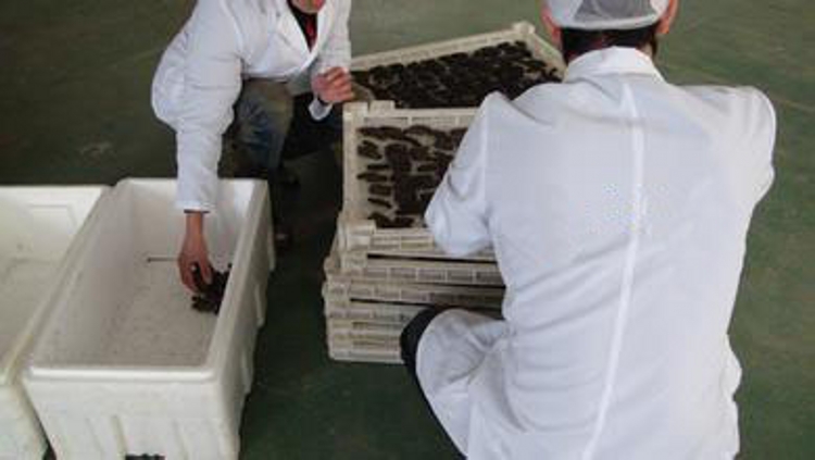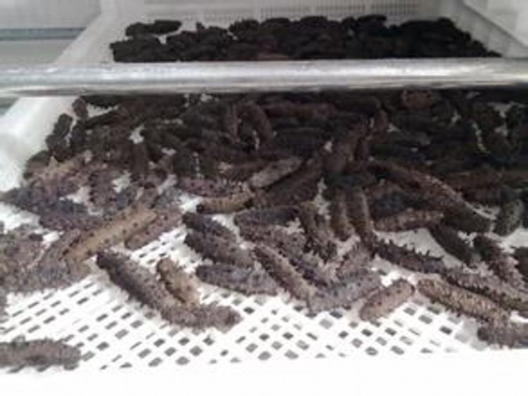 7、采用3℃—40℃相对低温烘干,烘干后的产品,品质高,不破裂,色泽好,营养元素好,不变色增加重量(采用低温定型技术,可将海参里的盐份完整的保存在海参里,达到了海参重量比用其他方法加工的重量多,外观颜色不改变)。