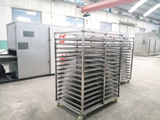 3. MCHS-120,宽2580*高2200*厚1300,循环风机2台,脱水机一套,7.5KW加热装机功率,64托盘尺寸:600*800*75mm电压:380V 50Hz ,烘干干海参120公斤