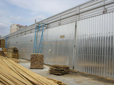 加热系统的主体是迈创系列蒸气式热风炉。热风炉质量的好坏不仅关系到加热系统或蒸气系统的寿命,也关系到换热器的传热效率。迈创系列金属体木材烘干机所采用的蒸气式热风炉为新型钢(不锈钢或无缝钢)铝复合整体轧制的翅片管加热炉,翅片无皱摺,气流阻力小,传热效率高,耐腐蚀性能好,使用寿命长。实践表明,该热风炉的综合性能大大优于国内普遍采用的绕片管式或串片管式加热器。本身蒸气式热风炉带有蒸气发生装置,可以取代原始的木材烘干机必须配备两台炉子的落后工艺,我们迈创系列木材干燥设备是近年来研发的新一代木材干燥设备,本设备的优点在于只需一台蒸气式热风炉。低能耗,温度提升快,易操作,我们并配备有多年经验的各种木材的烘干工艺,只需要一台2.2千瓦的电力勋耗,环保等优点。燃料需要木材边角料或煤炭。