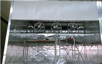 1、利用耐高温高湿轴流风机对翅片散热器表面进行热交换,因为散热器表面翅片管面积增大,通过热风循环系统使得烘房内温度分布比较均匀。