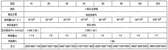 全套设备由燃烧系统、热风系统、电控系统三部分组成,燃烧部分包括热风炉,引烟风机,燃煤机等,通过燃煤提供额定热量。热风系统包括主风机,烟气余热换热器,热风管道等,可实现烟气与空气的热交换送出干净热风,电控系统包括风温监控仪,风门自控器,电控柜等,可实现风温指示,超温保护及主风机、引烟机联锁保护等保证安全运行。